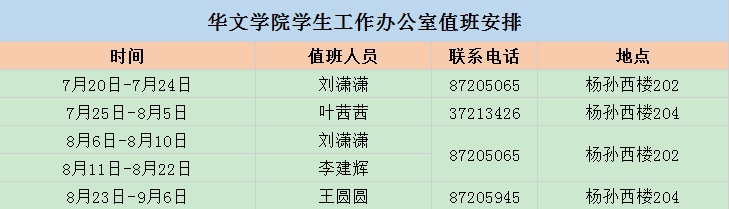 学院严格做好暑期校园疫情防控工作,加强师生安全指导。师生应妥善安排好暑假学习和生活,严格落实居家疫情防控要求。各单位按学校及学院统一要求做好管理服务人员的暑假轮休和值班安排。