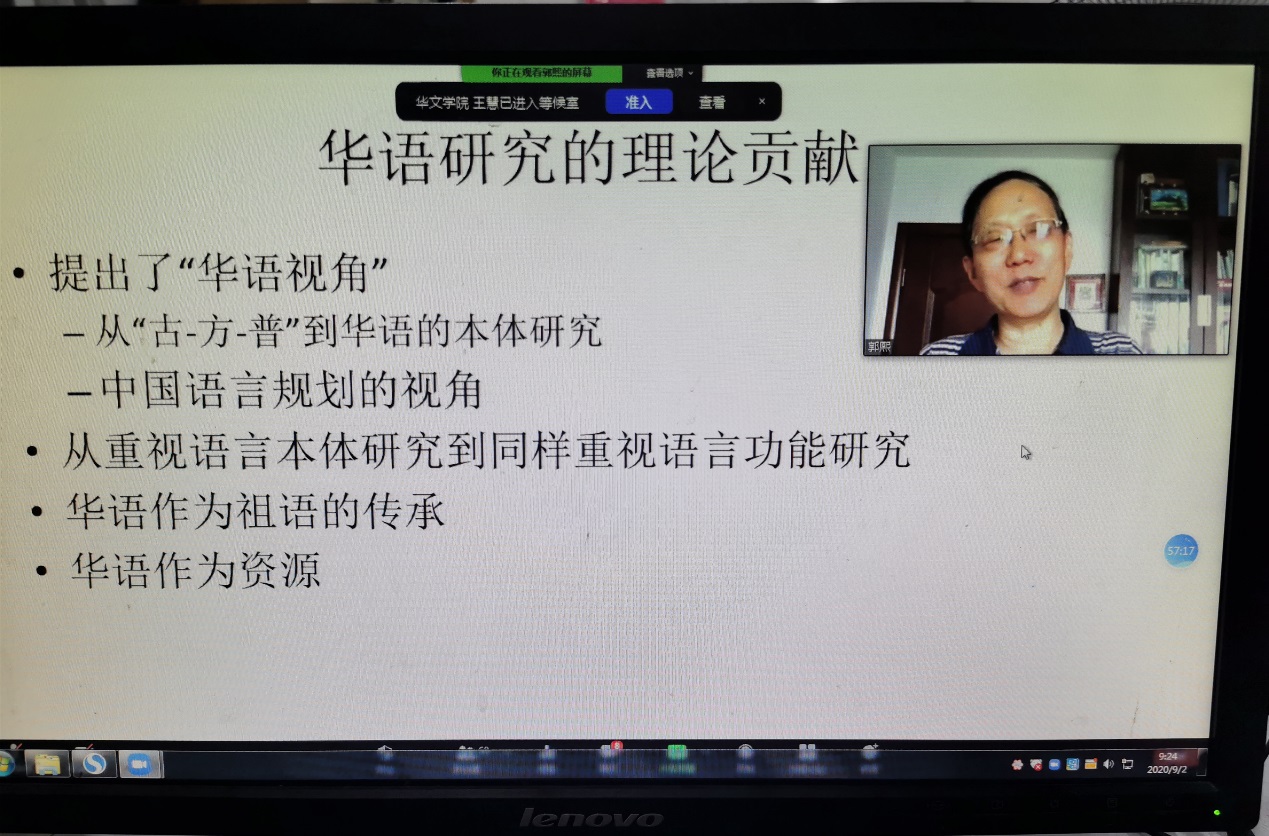 8月26日上午,黄色电影 副院长张礼出席研习班开班仪式,张礼向参加研习班的各位海外优秀华文教师表示热烈欢迎,感谢他们为认识华语、宣传华语、开发华语资源所做出的巨大贡献,希望各位华文教师通过此次研习,提升自身及所在地区华人的华语资源意识,促进语言资源的保护和市场开发。随后,国家社科基金重大项目“境外华语资源数据库建设及应用研究”、国家社科基金重点项目“海外华语资源抢救性搜集整理与研究”课题组主持人郭熙教授做题为《海外华语资源的抢救性搜集》的专题课程讲座。郭熙向研习班教师介绍了近年来团队对海外华语资源搜集和整理过程中所做的基础工作及遇到的相关问题。郭熙指出,近年来,海外华语研究受到了越来越多的关注,把华语作为一种资源也不断被提及。海外华语是全球华人共享的重要资源,它既属于华人社会,也属于所在国家和地区,做好对海外华语资源的抢救性保护工作,对其进行摸底、排查,搜集、整理,有着巨大的学术意义和实践意义。自2016年起,黄色电影 就开始筹划建设海外华语资源库并逐步推进;2019年国家社会科学规划项目指南第一次把海外华语资源库建设列入其中。海外华语资源库建设具有开创性,但是目前对华语资源的搜集和利用刚刚开始,亟需在资源挖掘与整理方面加深拓宽,以满足多视角的研究需要。