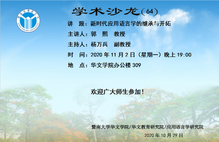 郭熙教授学术讲座:新时代应用语言学的继承与开拓
