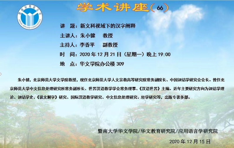 朱小健教授学术讲座:新文科视域下的汉字阐释