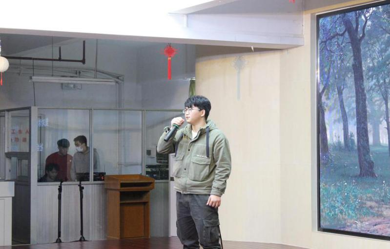 在观众翘首以盼中,首先是陈纪作同学为大家朗诵《沁园春·长沙》,“携来百侣曾游,忆往昔峥嵘岁月稠”……,他昂首挺胸,气宇轩昂,现场气氛在他激情澎湃的朗诵中逐渐活跃起来。接下来的表演更是精彩不断。