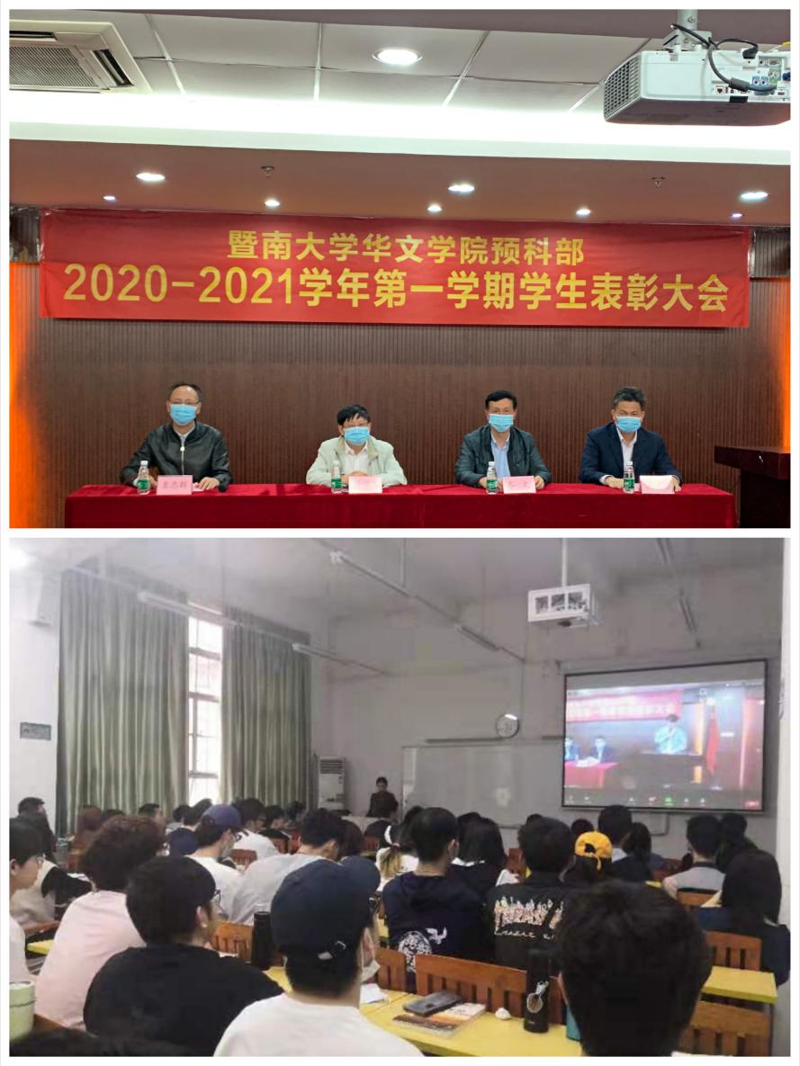 2021年3月25日下午4时,预科部A、B班第一学期学生表彰大会在办公楼309会议室顺利召开。大会分为309会议室线下主会场和A、B班各班课室线上分会场同时进行,出席主会场的领导有预科部温宗军主任、党总支岑文书记、袁忠群副主任、周思当副主任,以及各班学生代表。各班班主任和全体学生在本班课室参加线上会议,线上授课的学生在家中也参加了线上会议。本次大会由袁忠群主持。