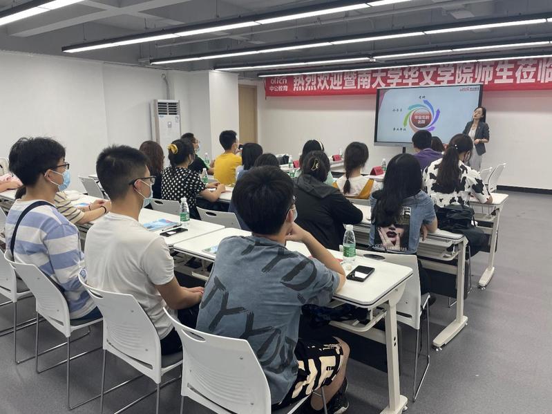 为搭建毕业生与用人单位的交流平台,为学院学生提供更好的就业机会,促进学院各层次毕业生的就业工作,我院各系部本科与研究生近20人在应用语言学系党支部书记陈争与辅导员曹玲的带领下,于2021年4月14日下午2点参观了广东中公教育机构总部。