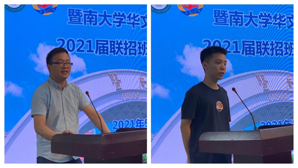 随后,教师代表程孟浩、学生代表林嘉毅发言。程孟浩代表预科部全体教师向顺利完成学业的同学们表示热烈祝贺。他提出了几点希望:第一,树立远大理想,把个人前途与祖国命运紧密联系;第二,堂堂正正做人,踏踏实实做事;第三,提升沟通表达能力,礼貌待人、友善处事;第四,学会坚强,做积极向上、自信乐观的人。林嘉毅代表全体同学向一年来辛勤付出的老师们表示感谢,他回忆了在预科部的珍贵时光,感恩在这里收获的知识及为人处世的品德修养,表达了对母校最诚挚的祝福。