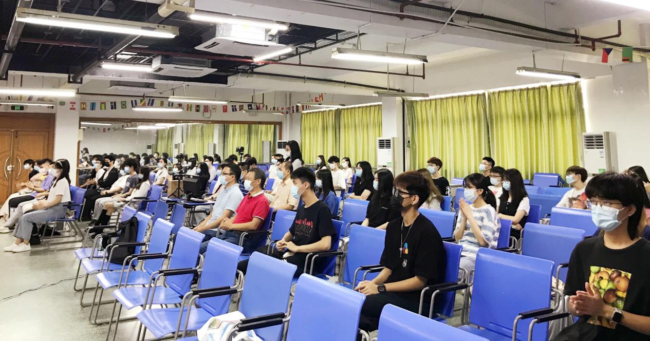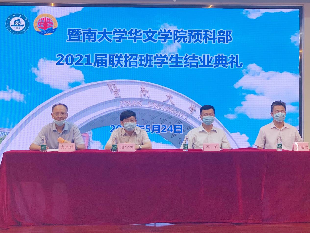 5月24日上午,黄色电影 预科部在第一教学楼学生活动中心隆重举行2021届联招班结业典礼。因疫情防控,结业典礼分为活动中心线下主会场和联招班各班课室线上分会场同时进行。出席主会场的领导有预科部主任温宗军,党总支书记岑文,副主任袁忠群、周思当。部务秘书、辅导员、联招班班主任和学生全部参会,已离校回香港的学生也在线参加了典礼。大会由袁忠群主持。