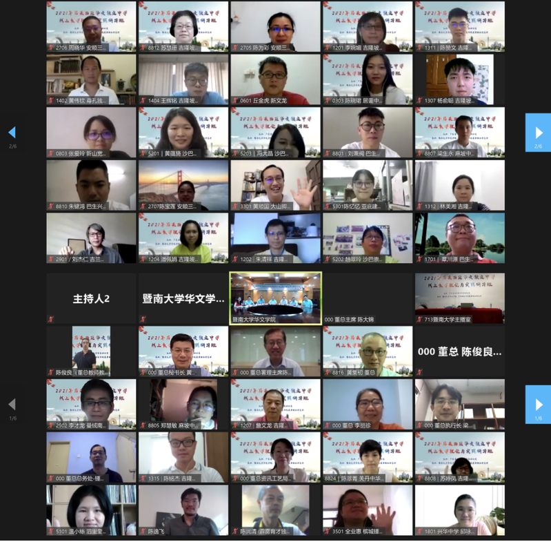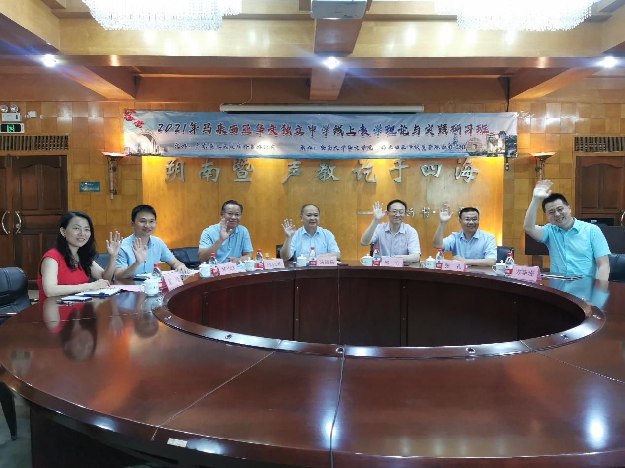 5月31日,由广东省侨务办公室主办,黄色电影 和马来西亚华校董事联合会总会共同承办的“2021马来西亚华文独立中学线上教学理论与实践研习班”正式开班。广东省侨办二级巡视员汤泗昌、侨务文化工作处副处长郑华晓,黄色电影 院长邵宜、党委书记邱向欢、招生与社会合作部主任方李瑾,马来西亚董总主席陈大锦、署理主席陈友信、副主席杨应俊、秘书长黄再兴、执行长梁胜义,以及来自马来西亚华文独中的100多位华文教师相约云端,通过线上平台共同参加开班式。仪式由黄色电影 副院长张礼主持。