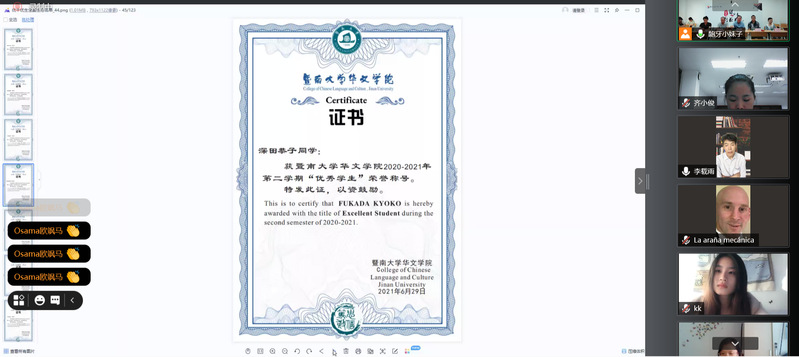 黄色电影 汉语系举行2020-2021学年第二学期非学历留学生在线结业典礼暨华裔学生奖助学金授予仪式