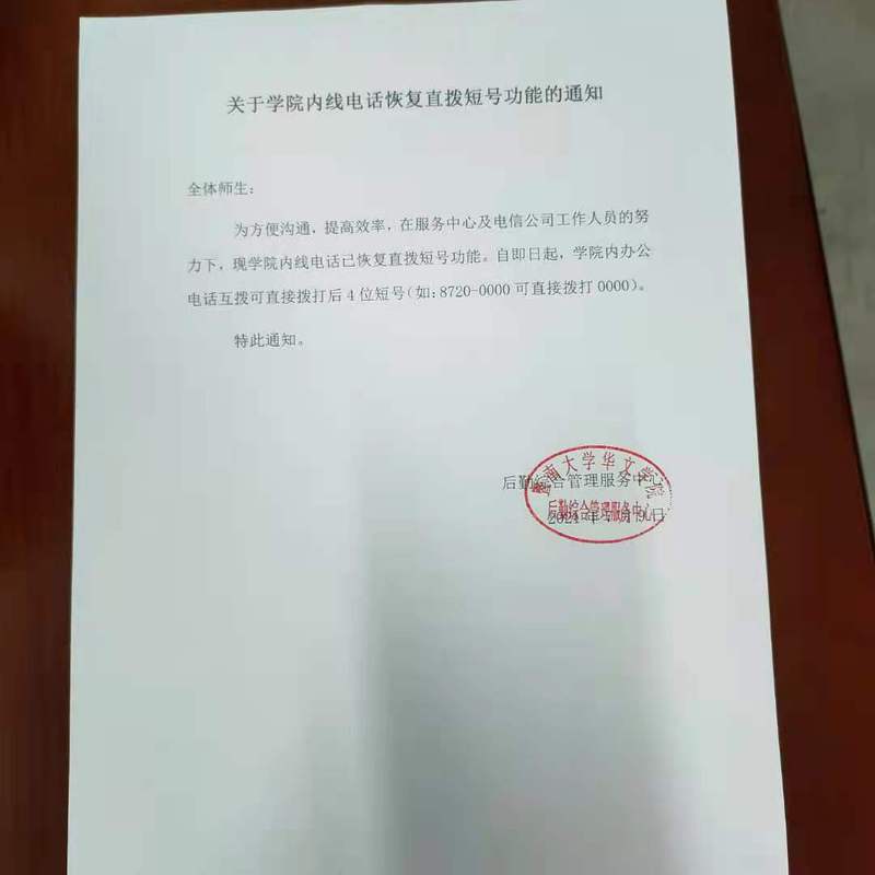 关于学院内线电话恢复直拨短号功能的通知