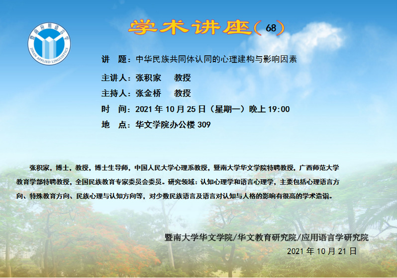 张积家教授学术讲座:中华民族共同体认同的心理建构与影响因素