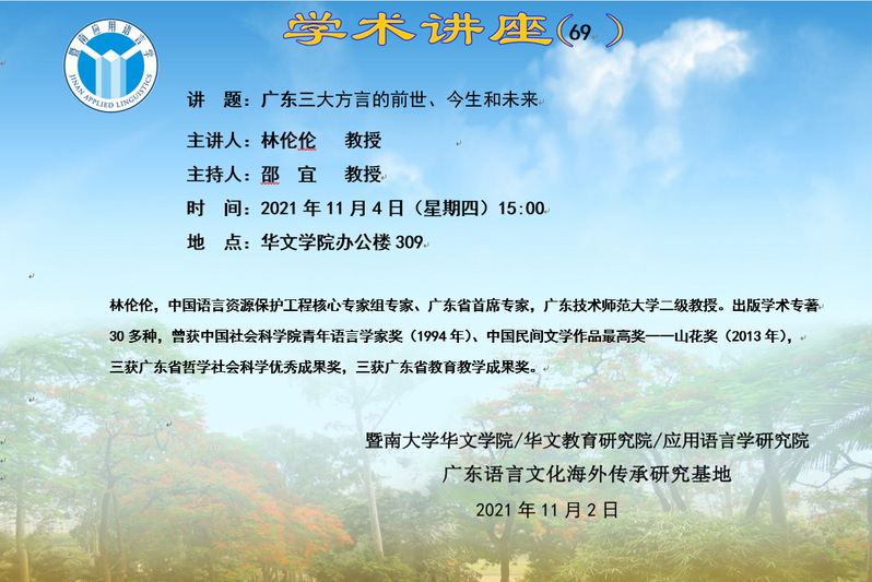 林伦伦教授学术讲座:广东三大方言的前世、今生和未来