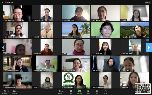 教师代表李敏向全体学员表示亲切问候和诚挚谢意,她用“感佩、相遇、连接”三个词表达自己的心情。她对全球各地学员在难关重重的后疫情时代,克服阻力、积极探索、不断求知的精神表达钦佩之情。她说,各位学员身在海外、心系华文教育,此次研修班用网络将全球华文教育者连接起来,一起远航。她表示,此次研修是教材编写者和使用者的一次充满价值、令人期待的相遇,任课教师团队将把自己储备的教材编写理论和实践与大家认真分享。
