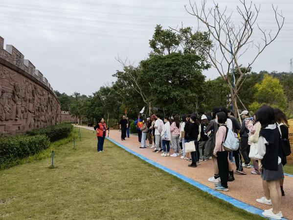 接着,学生们又参观了中医药文化浮雕长廊。浮雕景观长廊全长1028米,是目前世界上最长的中医药历史文化浮雕,并荣获“最长砂岩深浮雕”吉尼斯世界记录称号。长廊以中华中医药历史发展为主线,涉及人物超过1400余人,中医典故340余例,涉及中医典籍120多部,将五千年来中医药发展的重大历史事件展示出来。在参观文化浮雕长廊的过程中,学生们认真观看每个浮雕故事,了解五千年来中医药发展的历史进程,也深切感受到先辈们为中医药发展艰苦奋斗的伟大精神。