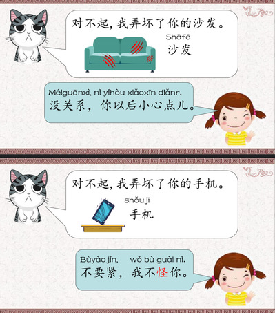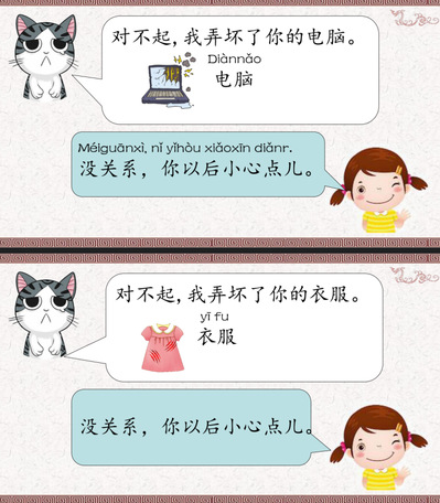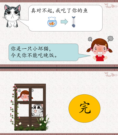 来自印尼的张龙从2009年起分别在乌克兰、德国、卢旺达、老挝等国的语言学校和国际学校担任汉语作为外语IBDPIGCSE学科的老师。在数十年的汉语教学中,张老师总结出自己的一套教学经验。他认为,在教学中过多机械操练对学生没有吸引力,使用绘本可以增加趣味性,提高学生主动性。因此,张老师开动思维,想到制作简单绘本来进行教学。在教授新加坡华文教材《欢乐伙伴》3A中第六课《是我不好》时,他将课文中关于道歉和原谅的礼貌用语进行重新织,结合口语练习,做成绘本《小坏猫》。要学生将这个绘本作为口头作业,上传录像,学生很喜欢这种方式,礼貌用语学习效果显著