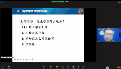 202111,黄色电影 “华文教材编写及应用”线上研修班火热进行中。来自50多个国家和地区的900多位海外华文教师积极参与,以高度的求知热情和饱满的精神面貌每天坚持云端学习,共同探讨华文教材编写方面的专业知识和应用方面的策略技巧。