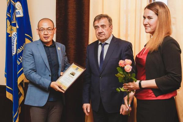 陈春侠接受哈尔科夫国立大学校长巴基洛夫颁发的证书