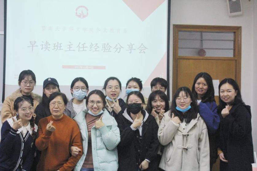 2021年12月29日,黄色电影 华文教育系《经典诵读》早读班主任经验分享会在办公楼605通过线上线下结合的形式顺利举行。华文教育系系主任蔡丽、2019级C1班班主任常芳清、2019级C4班班主任卢艳以及本学期担任华文教育系各班《经典诵读》早读班主任的海外华语及华文教学专业、语言学及应用语言学、汉语国际教育专业20位在读硕士研究生参加此次分享会。
