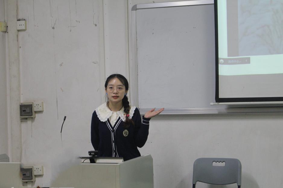 2020级B2班《经典诵读》早读班主任、海外华语及华文教学专业2021级研究生李鑫从早读任务、促进学习、我的收获三方面对本学期课程进行分享。她特别重视跟学生的沟通互动,通过录制视频的形式跟学生互相认识,同时也在钉钉或微信跟学生保持互动,随时了解学生动态和喜好,并以此来进行教学内容的选择和教学方式的调整。其次,她也会让学生介绍各国诗歌及文化,锻炼学生教学实践能力。