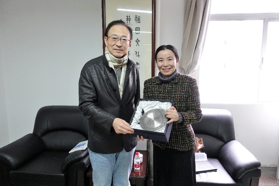 (邵宜院长向刘朝华副社长、副总编辑赠送纪念品)