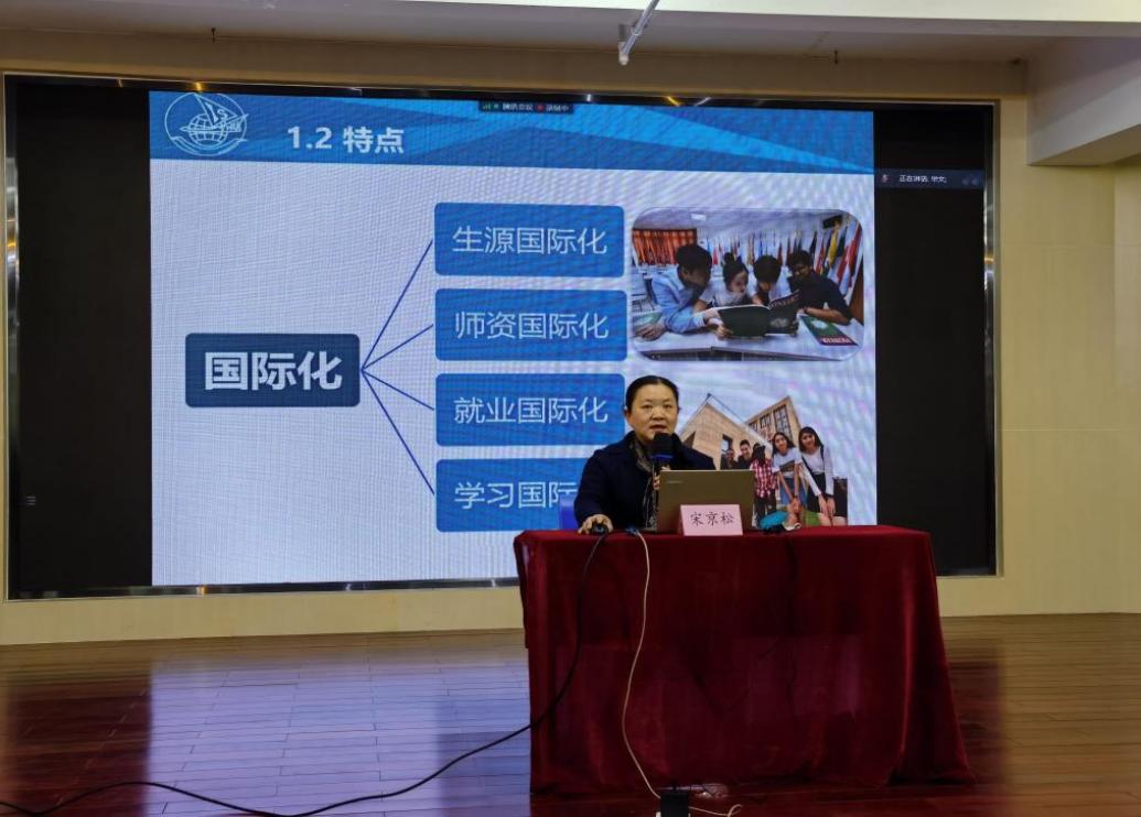最后,宋京松为同学们介绍了国际学院的基本概况、专业特色、学科优势;介绍了国际学院以浓厚的全英文教学环境为特色,为学生提供国际化师资与就业机会,助力学生实现梦想;他还结合自身经历给大家分享了历届优秀毕业生的经验与心得,提醒学生与家长多沟通交流,结合自己的兴趣爱好与学院专业设置进行志愿填报。各班同学认真倾听、做笔记,并通过问答与老师积极互动。