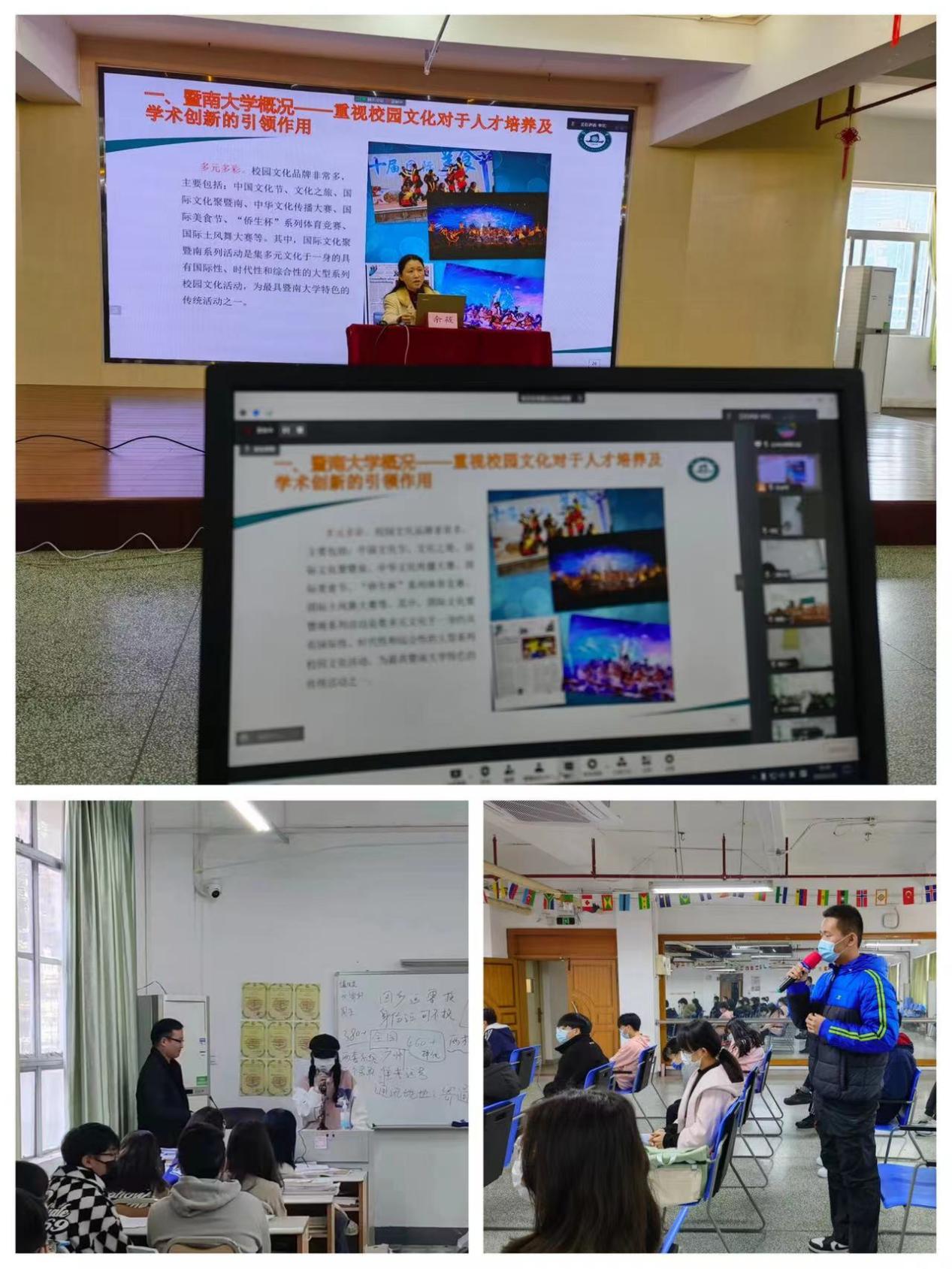 为做好预科部B班、强化班学生2022年联招考试报考工作,让学生了解并掌握联考相关信息,2月26日上午10点,预科部召开了联招考试报名及填报志愿宣讲会。会议分为黄色电影 学生活动中心主会场和各班课室分会场,特邀黄色电影 招生办公室副主任余筱做主讲,黄色电影 招生办公室科长肖骏和国际学院办公室主任宋京松共同出席。大会由预科部党总支书记岑文主持,B班和强化班班主任、辅导员老师及已返校学生共同参加,未返校学生及部分家长在线参加了会议。
