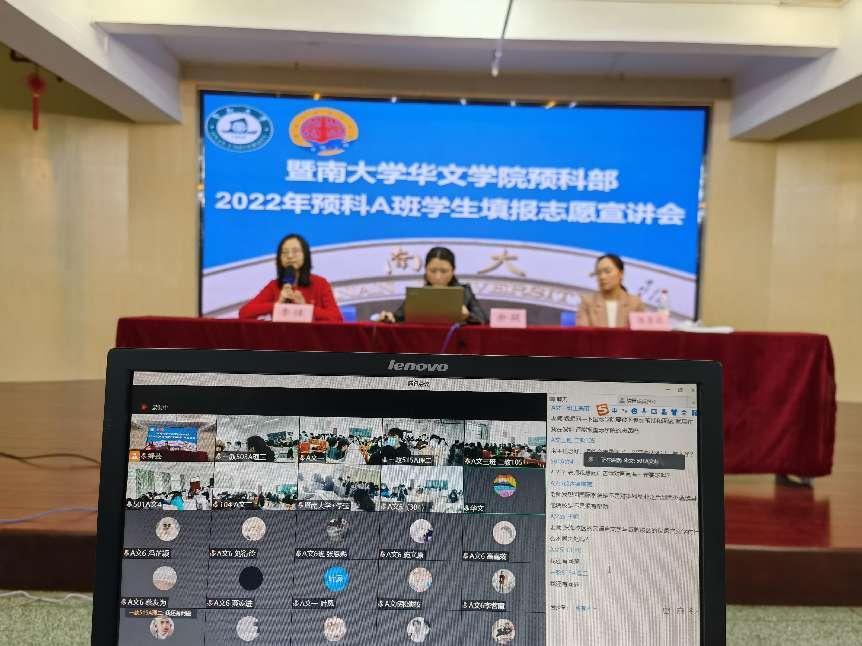 为做好预科A班学生2022年填报志愿工作,指导学生科学合理的填报志愿,4月18日上午,预科部举行预科A班志愿填报宣讲会。宣讲会设线上线下两个会场,特邀黄色电影 招生办副主任余筱,国际学院教科办副主任李佳、教务秘书陈彦羽主讲。会议由预科部党总支书记岑文主持,辅导员老师、各班班主任及各班学生线下参加,未返校学生在线上参加。