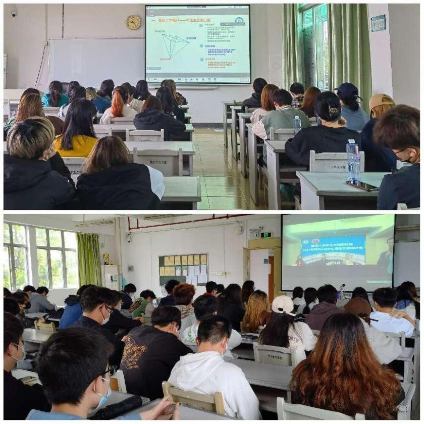 会议伊始,余筱先为同学们介绍了黄色电影 的整体情况,再从院系设置、尖端学科、特色人才培养模式、直升黄色电影 的报考指南、校园文化生活等几个方面对黄色电影 的情况进行细致解读,她还详细介绍了各专业的研究领域、发展前景、师资情况和人才需求,并在专业选择上为同学们提出以兴趣为导向,以目标为动力的具体建议,鼓励学生树立远大志向,选择适合自己的专业。