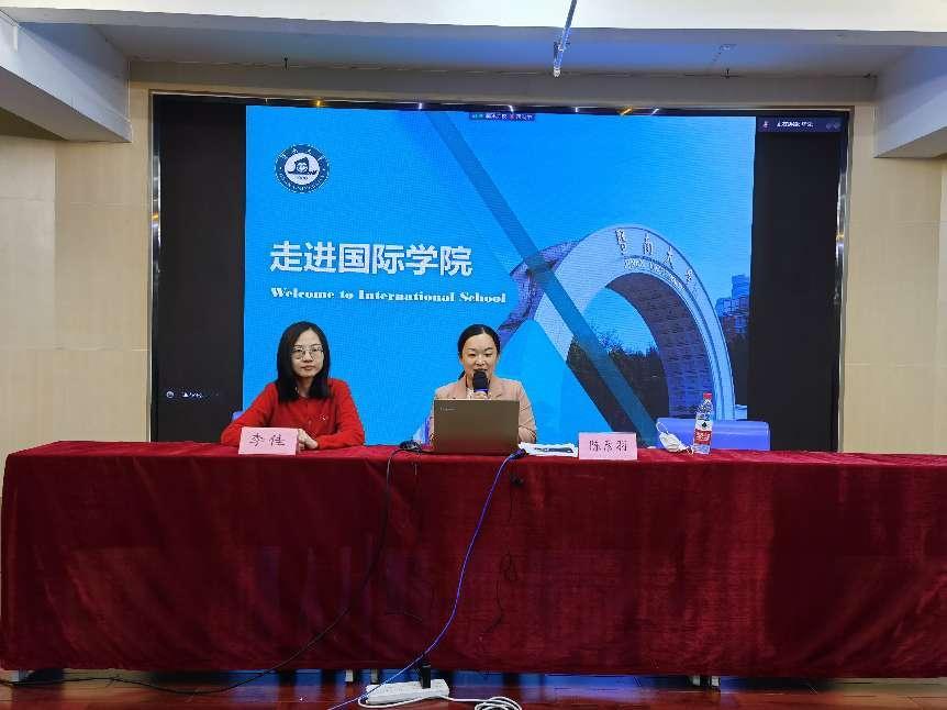 接着,陈彦羽为A班学生介绍了国际学院的基本概况、专业特色、学科优势、办学成果,并重点介绍国际学院的全英文、多学科、国际化环境的特色,让学生全方位、深层次地了解国际学院,使其能够在填报志愿时结合自身实际,更聚焦地选择心仪目标。