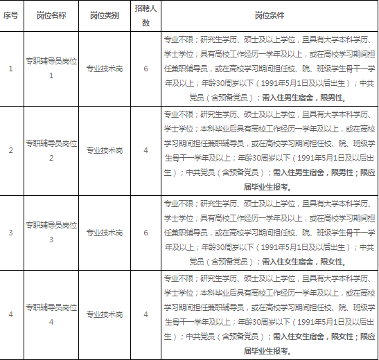 公开招聘35名工作人员,其中需要辅导员A岗10人,辅导员B岗10人。