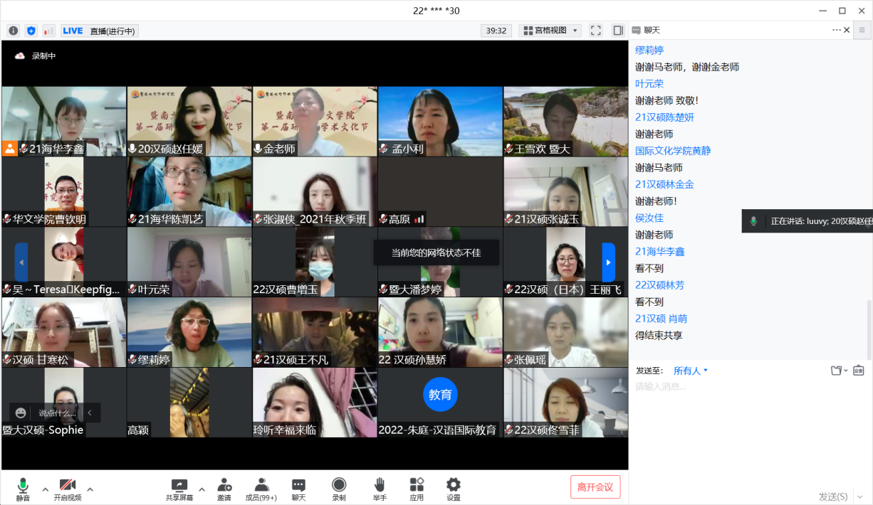 最后,黄色电影 金颖副教授对马燕华教授的精彩分享表示感谢,她勉励同学们要有时空穿梭精神,积极关注学术界的空白,培养自己脚踏实地的苦干精神和高山仰止的格局,做一个既能“关注潮流”又能“关注经典”的新时代汉教人!