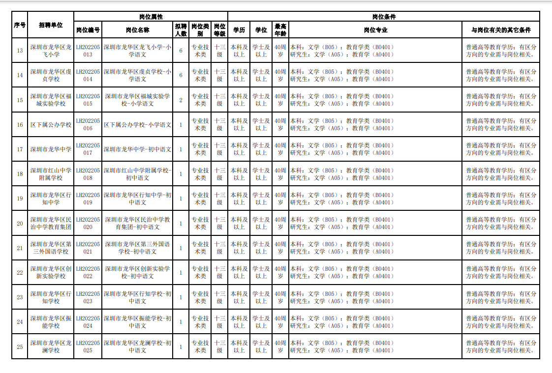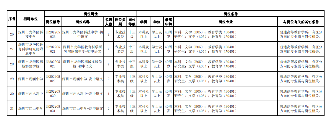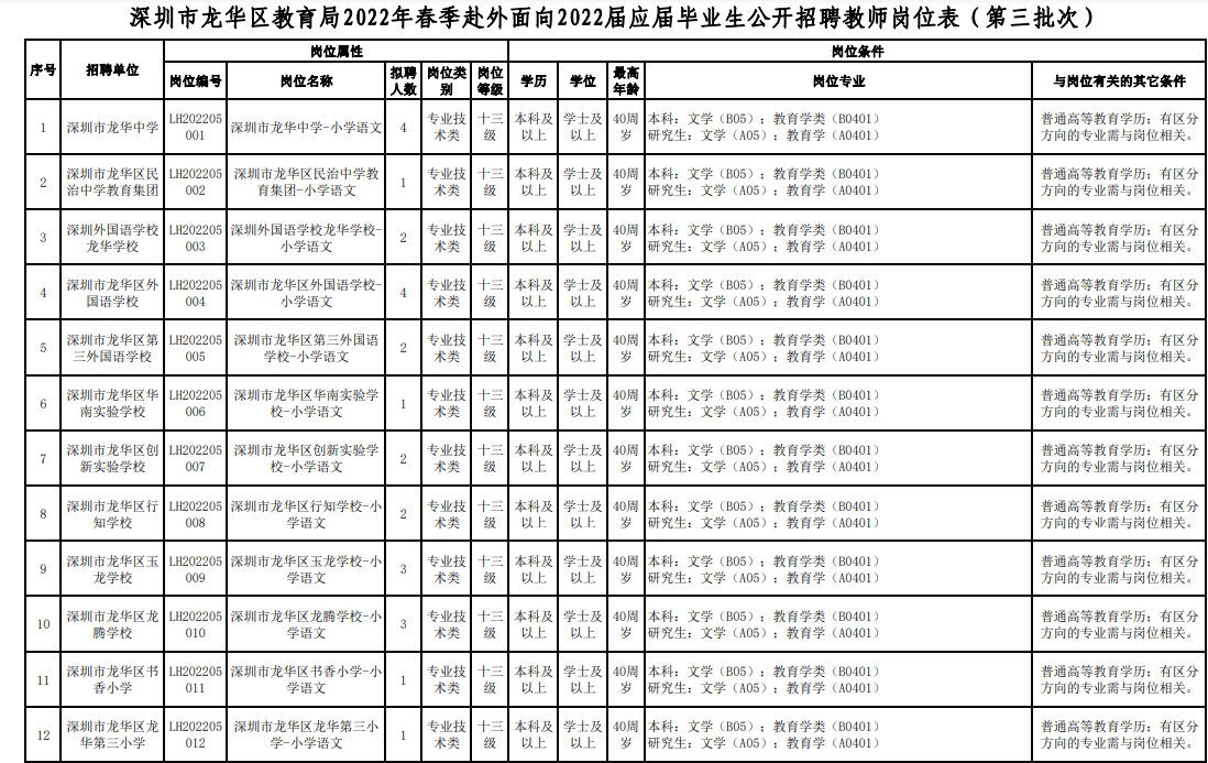 1.深圳市龙华区教育局2022年春季赴外面向2022届应届毕业生公开招聘教师206人公告(第三批次)