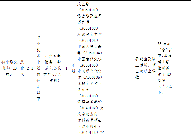 广州市从化区教育局按照公开、平等、竞争、择优的原则,现面向全国公开招聘事业编制初中语文教师1名,现将有关事项公告如下:
