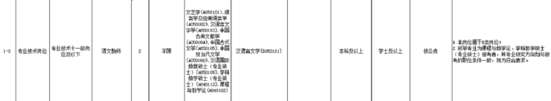 招聘岗位:语文教师2名