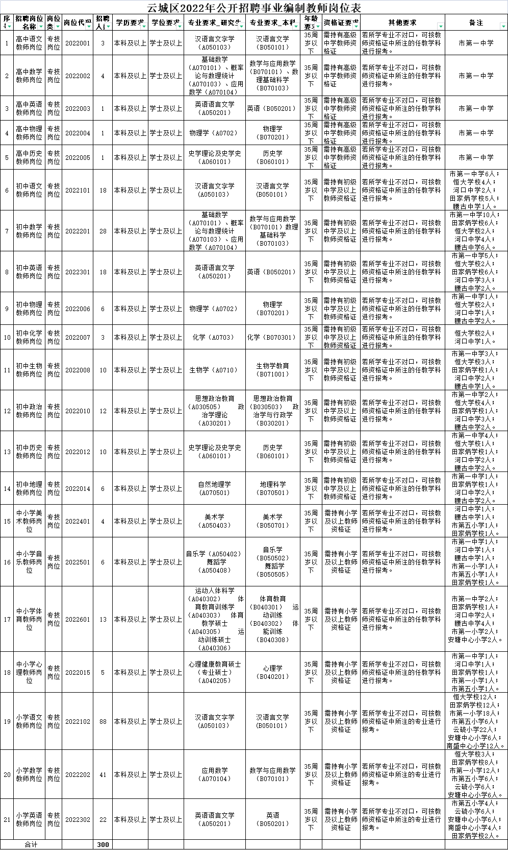 3.云浮市云城区2022年公开招聘事业编制教师300人公告