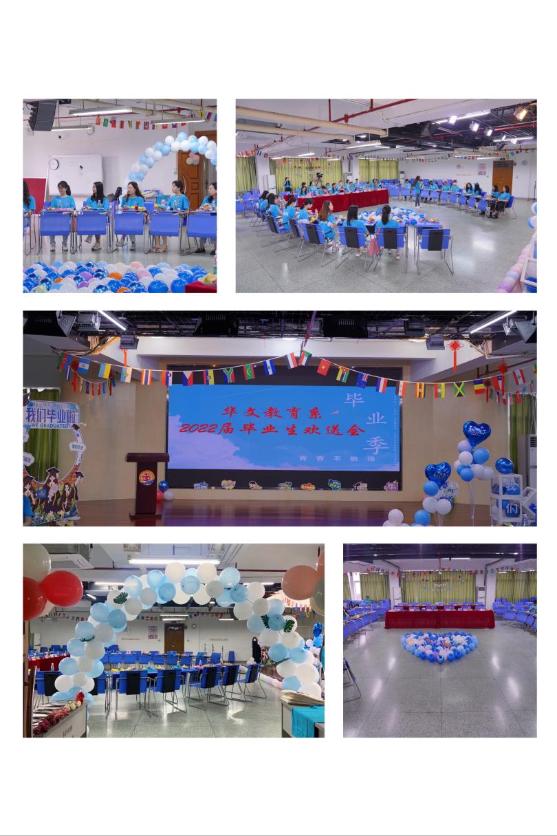有海水的地方就有暨南人,华文教育系2022届毕业生欢送会,以“海水蓝”为主色调,欢送来自五洲四海的华文学子,祝愿他们“海阔凭鱼跃,天高任鸟飞”。