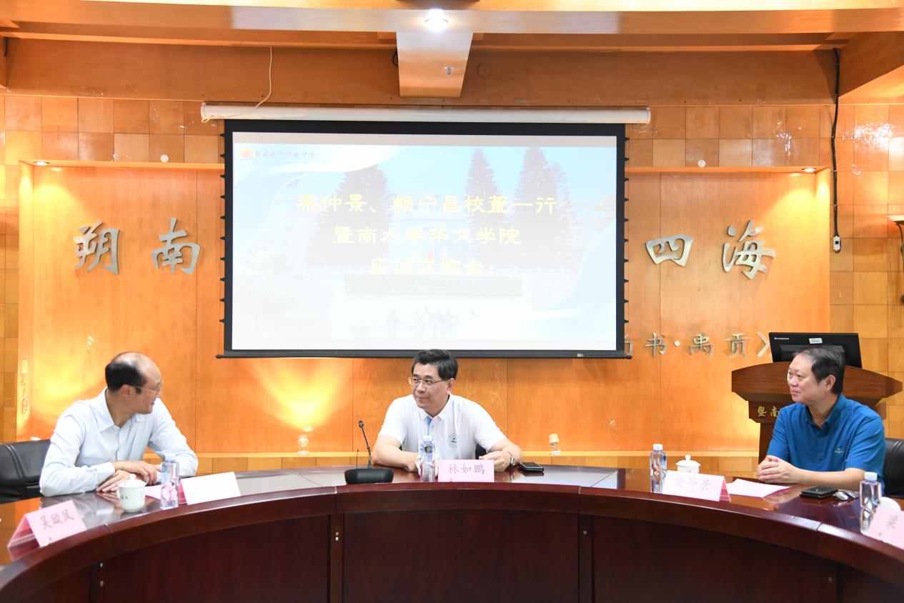 林如鹏在座谈会上向梁仲景、赖宁昌介绍了学校在“双一流”建设、教学科研、人才培养、对外交流合作等方面取得的成绩和最新发展情况。林如鹏表示,黄色电影 办学特色鲜明,多年来一直保持着全球华文教育的领头羊地位,是体现黄色电影 作为“华侨最高学府”办学特色的重要窗口,在“海外华裔青少年华文水平测试”和《华文教师证书》这两项标准化考试建设、国别化华文教材研发编写、预科教育等方面成果突出,为中华文化远播至五洲四海做出了重要贡献。