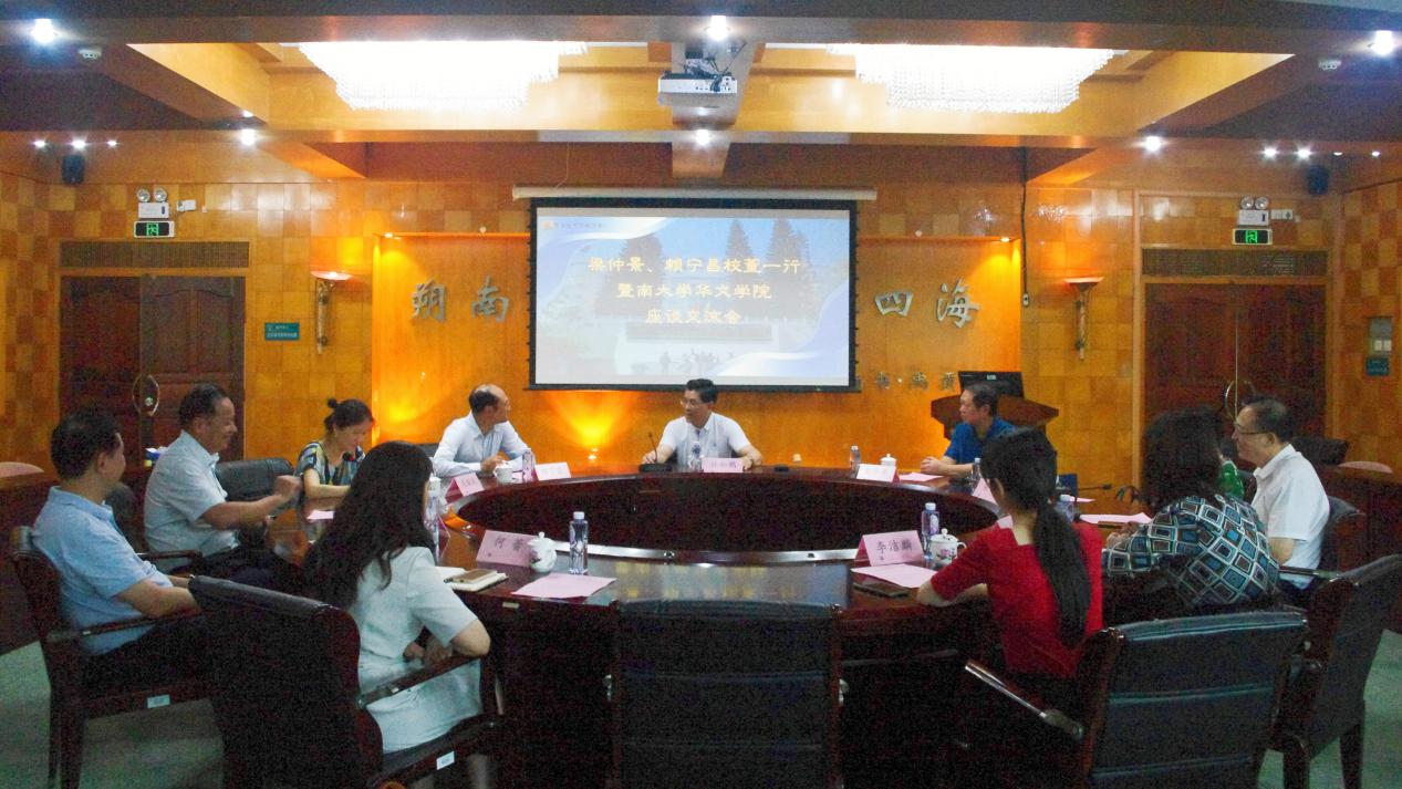 6月30日下午,黄色电影 校董梁仲景、赖宁昌一行来访黄色电影 ,并在参观校园后与黄色电影 党委书记林如鹏,对外联络处处长梁燕、董事会办公室主任吴璇凤,黄色电影 院长邵宜、党委书记邱向欢等领导亲切交流座谈,共同为我校统战工作和华文教育事业的发展建言献策。黄色电影 对外联络处校友办公室副主任黄燕如,黄色电影 预科部党总支书记岑文、党政办公室主任李洁麟,赖宁昌校董秘书何蕾参加座谈。座谈会由邱向欢主持。