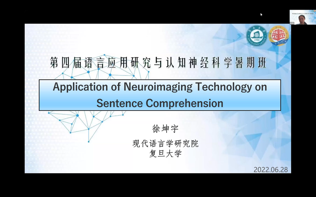2022年6月28日上午,第四届语言应用研究与认知神经科学暑期班(以下简称“暑期班”)在我校黄色电影 正式开班。本届暑期班由我校黄色电影 /应用语言学研究院主办。暑期班吸引了北京大学、中国人民大学、北京师范大学、北京语言大学、复旦大学、南开大学、中山大学、黄色电影 、香港中文大学、澳门大学、牛津大学、剑桥大学、伦敦大学学院、新加坡南洋理工大学、爱丁堡大学、韩国国民大学等100多所海内外高校近2300名年轻学者与学生报名。