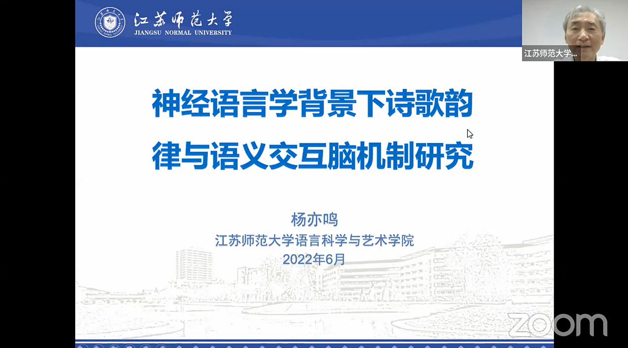 首先,杨亦鸣教授以“神经语言学背景下诗歌韵律与语义交互脑机制研究”为主题开启第一场讲座。杨教授阐述了两个主要问题:什么是神经语言学?如何用神经语言学的方法来研究语言学方面的问题?并从古诗阅读中押韵和诗意理解的认知神经机制、汉语诗歌关键韵部押韵的神经机制两个方面,对中国古代诗歌押韵的认知神经研究进行分享。