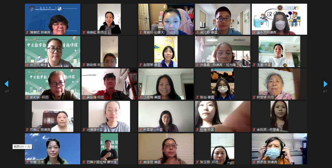 此次“中文教学教法微技能”线上研修班,旨在帮助海外华文教师解决在教学中遇到的实际问题,通过对教学内容重难点的分析以及教学技法探讨,从“微”处入手,为一线海外华文教师提供切实可行、实之有效的技能方法指导,助力华文教育事业的发展。研修班共开设28个专题课程,涵盖内容广泛,突出微观技法,得到了学员们的认同和肯定。