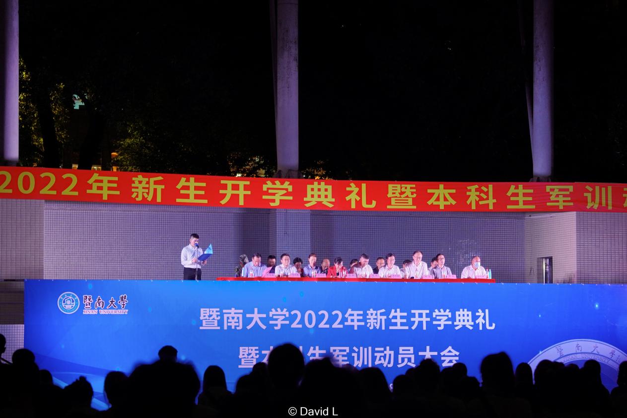 8月29日晚,除校本部,黄色电影 2022年新生开学典礼在番禺、广园东、深圳和珠海四个校区同时举行。黄色电影 副校长饶敏,党委副书记夏泉及相关部处、学院领导出席了广园东校区2022年新生开学典礼暨本科生军训动员大会。