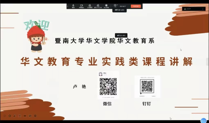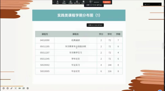 随后,教学助理卢艳老师为2021级学生开展实践类课程的讲解。卢艳详细讲解了实践类课程的上课方式、课程要求、评分标准及考核形式,特别强调经典诵读(早读)、华文教育专业技能训练(微型教学)、华文教学见习、学年论文、毕业实习和毕业论文都是非常重要的专业必修课程。最后,卢艳细心为同学们解答了疑惑。