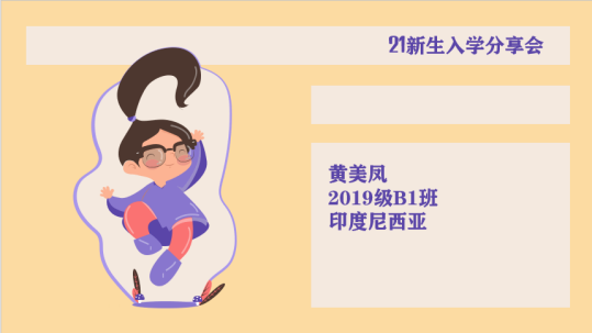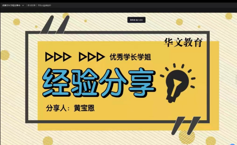 26日上午,黄美凤(2019级B1班印度尼西亚学生)、许凤明(2019级A班马来西亚学生)、黄宝恩(2018级A班马来西亚学生)作为优秀学姐展开会谈。黄美凤以自己的亲身经历来勉励新生们在大学期间多参加比赛,不要因为“自我否定”而限制自己的能力。许凤明则针对网课学习给出了四大建议:一,找到适合自己的学习方式,二,制定详细的学习计划,三,培养自身的学习兴趣,四,多学习课本以外的知识,多实践。在学习之余,她也鼓励大家多参加一些社团或比赛,在不影响学业的前提下去尝试一些与课程相关的社会实践类的工作。黄宝恩向新生们分享了她刚接触网课时的窘境到逐渐适应,再到现在斩获学校甚至国家级各类奖项的过程。