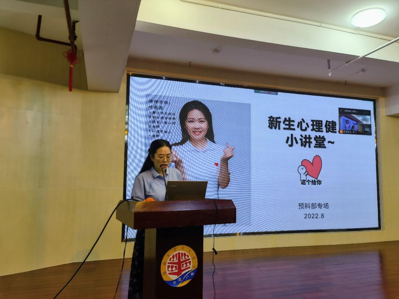 新生教育第一课是由学院心理中心教师叶茜茜主讲心理健康教育,她以“写给一年后的自己”为主题,通过游戏和写信的方式与学生互动交流,给同学们提供了许多行之有效的调节方法和寻求帮助的途径。她希望预科新生可以通过运动、图书和趣味竞赛等方式,主动学习心理健康知识和调节情绪的方法,积极应对心理问题,并鼓励同学们能通过心理咨询解决校园生活中遇到的实际问题。