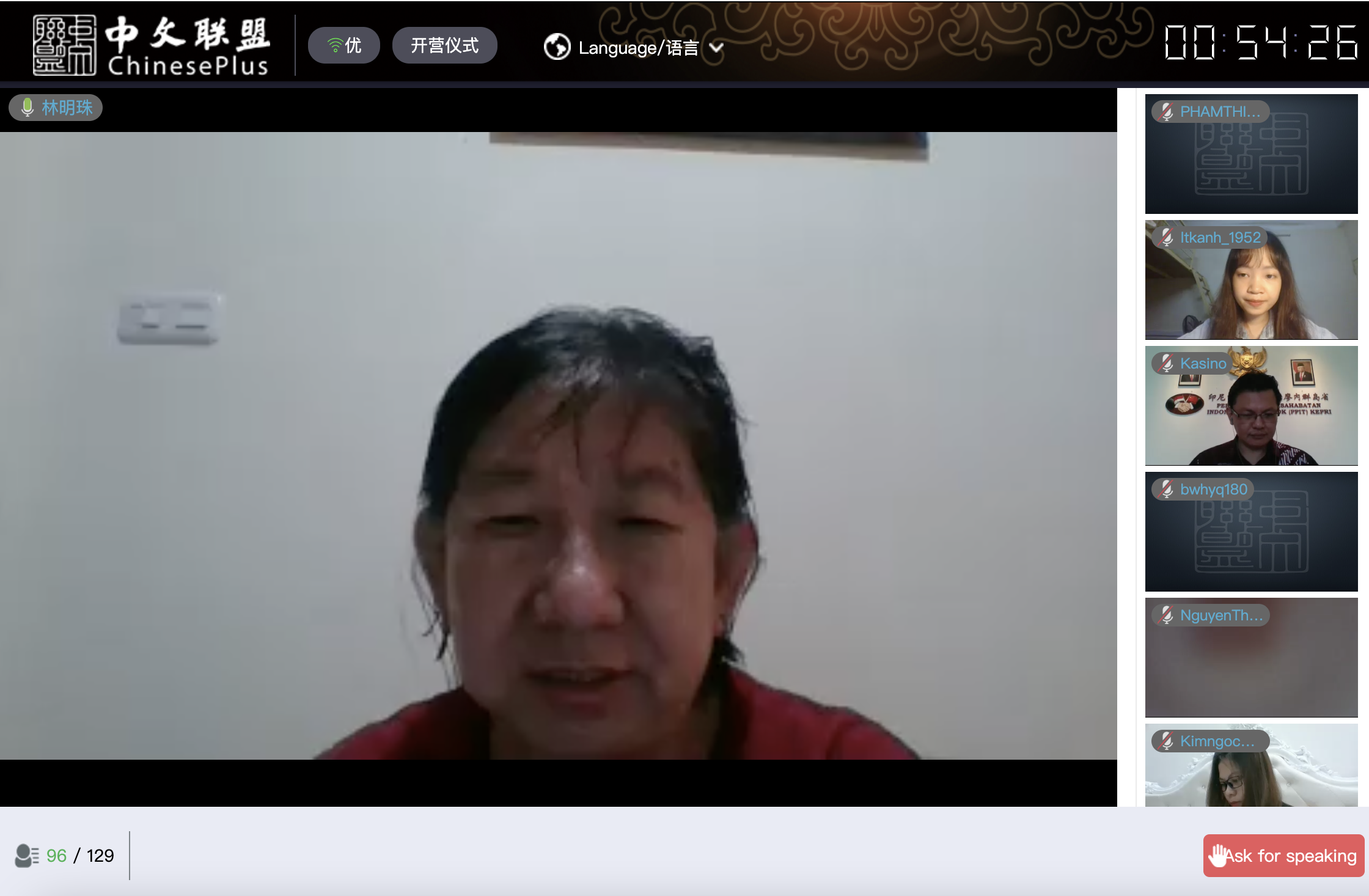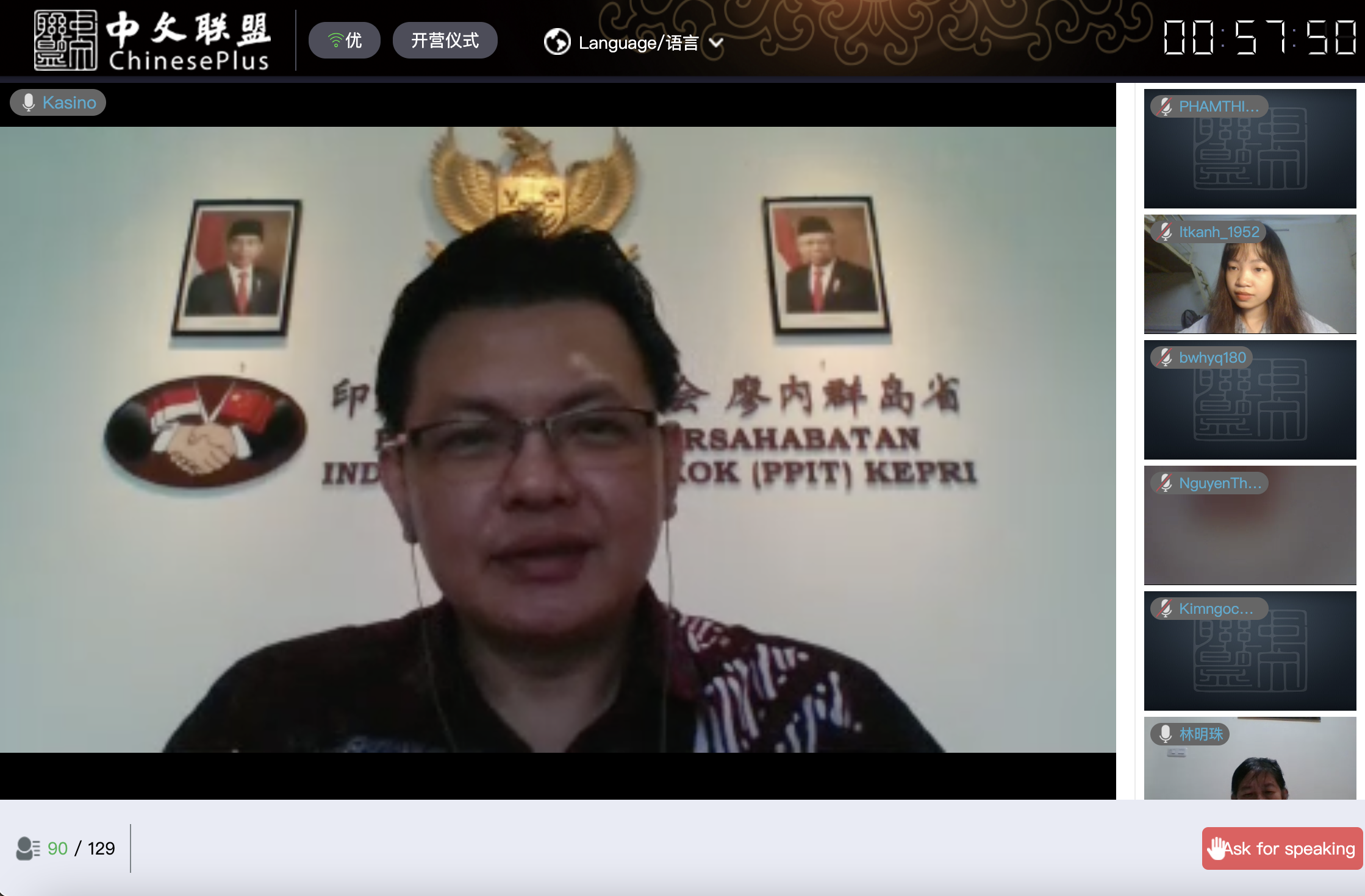 林明珠作为线上嘉宾代表发言。她认为此次秋令营课程丰富多彩、别具特色,相信学员们会有更多的收获。非常感谢能有此机会让印尼的中小学生领略博大精深的中国语言文化。