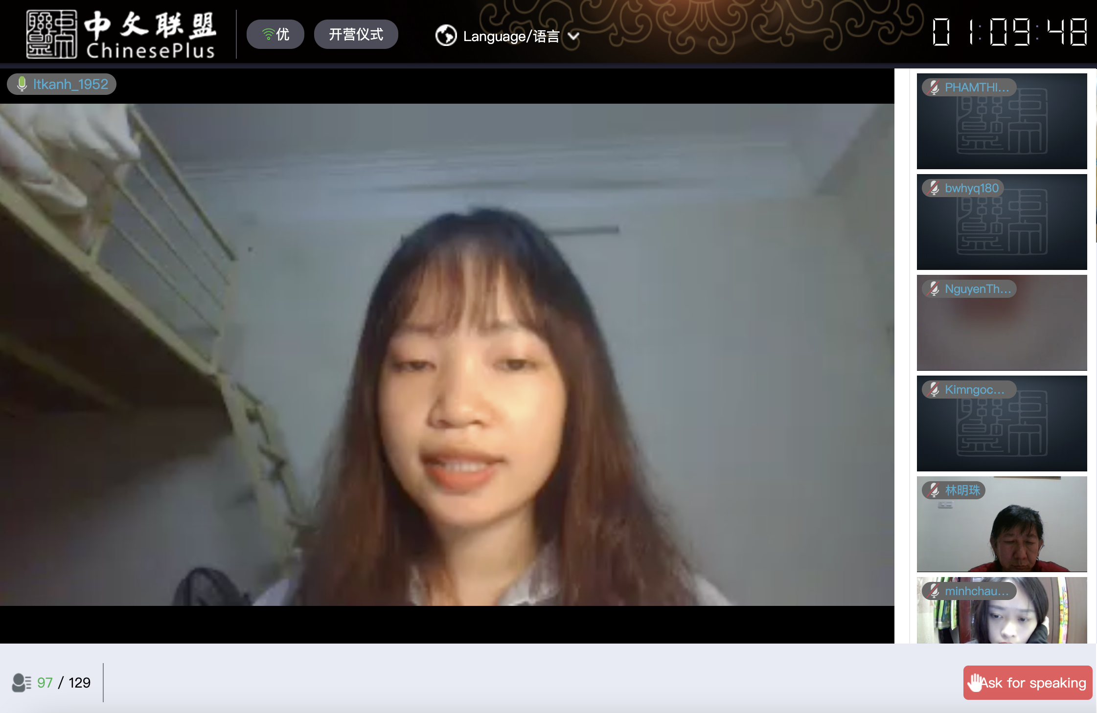 “‘云端相聚,言通你我’——语言文字大乐园”,以中文语言教学为基础,以中国传统文化体验为核心,旨在对海外学生进行语音、汉字、词汇等基础知识的教学及HSK考试相关能力培训,让学生通过语言学习深入体会中国优秀传统文化的价值内涵。