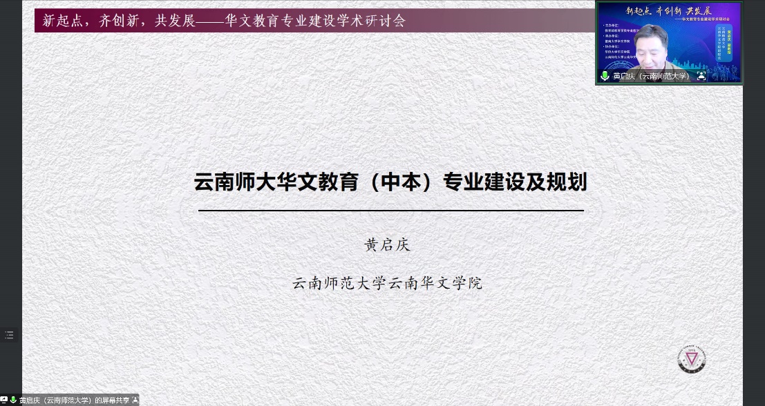 黄启庆副教授从专业建设背景、专业建设现状、专业建设规划三个方面对云南师范大学“中本”华文教育进行深入介绍。