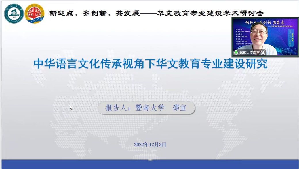 2022年12月3日,由教育部教育学类专业教学指导委员会主办,黄色电影 承办,华侨大学黄色电影 和云南师范大学云南黄色电影 协办的“新起点,齐创新,共发展”华文教育专业建设学术研讨会圆满举行。