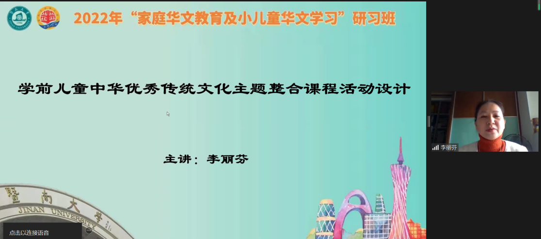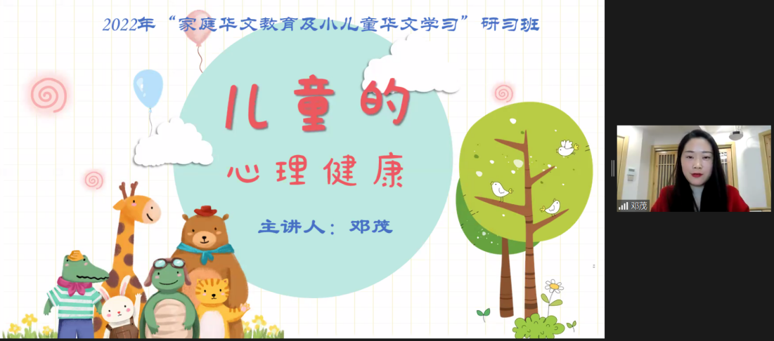 承办的2022年海外华文教师“家庭华文教育及小儿童华文学习”线上研习班邀请到国内多位优秀教师,讲授“少年儿童心理专题”“学前儿童中华文化教学主题活动设计”“实用乐器辅助华文教学”等课程。名师们结合自己丰富的教学经历,向学员分享儿童华文教学的经验和技巧,广受好评。