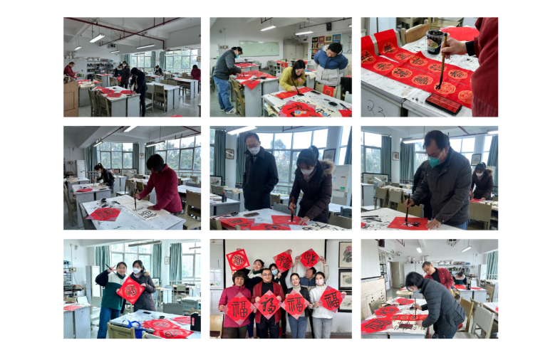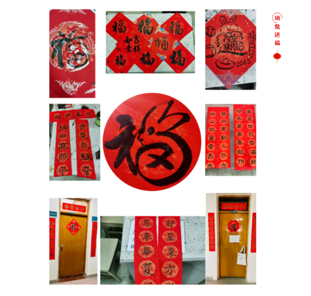 学院的关心慰问让大家非常感动,多种风格字体的“福”字和春联让大家倍感温暖,这也是学院工会“暖心行动”的体现。