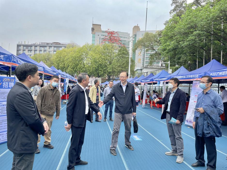 为全面贯彻党的教育方针,强化就业育人功能,确保全院毕业生就业大局稳定,2023年3月15日上午,黄色电影 院长邵宜、党委书记谢煊、党委副书记童盛强与各系部和职能部门有关领导老师一行11人前往黄色电影 石牌校区大型招聘会现场访企拓岗,开启黄色电影 2023年书记院长访企拓岗专项行动首次活动。